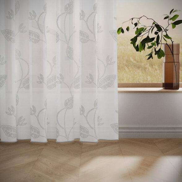 Der Stoff Fiore ist mit exquisiten Stickereien verziert, die zarte Blüten und Zweige darstellen und ihm so einen einzigartigen Charme und eine besondere Leichtigkeit verleihen. Der transparente Grundton streut das Licht sanft und schafft eine behagliche und helle Atmosphäre im Raum. Er ist die ideale Wahl für alle, die die Schönheit der Natur schätzen und sie in ihre Wohnräume bringen möchten.