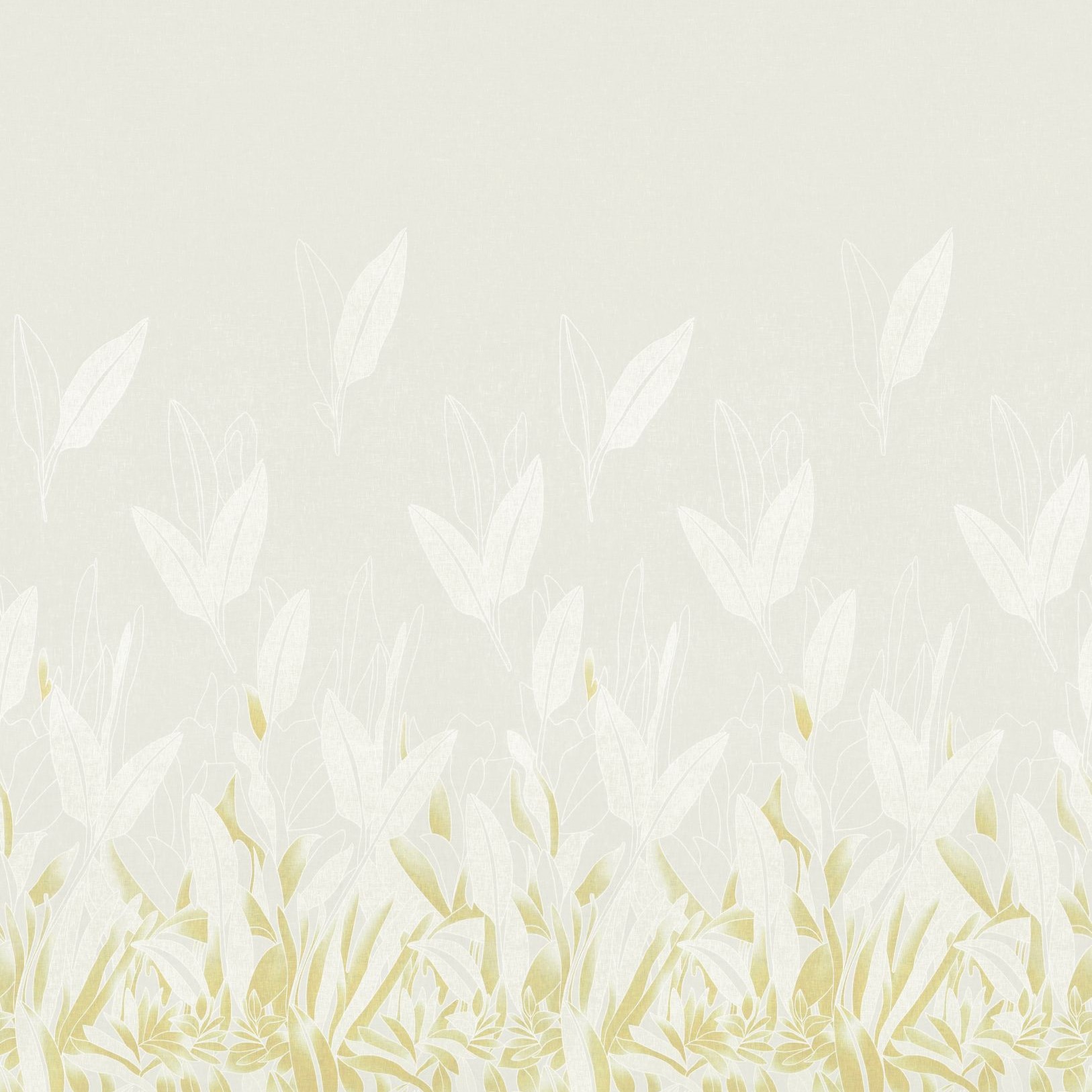 Vorhangstoff JOURNEY von ADO mit der Goldkante. Der coole Ausbrenner nimmt dich mit in eine Welt aus großen, dekorativen Blättern und weißen Outlines, die sich nach obenhin geheimnisvoll ins Nichts aufzulösen scheinen. Die dramaturgische Inszenierung der Farben auf dem Sockeldesign lässt keine Wünsche offen. Beruhigung bietet die Kombination mit der dichten Grundware TRAVELLER. ADO Stoffe online bestellen.