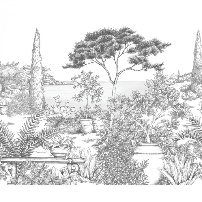 Diese zarte Komposition in Tusche mit oder ohne Aquarell ist eine Hommage an die Parks der Côte d Azur: exotische Pflanzen, Töpferwaren aus Anduze und schattige Terrassen - in diesen südlichen Gärten fühlt man sich wohl.