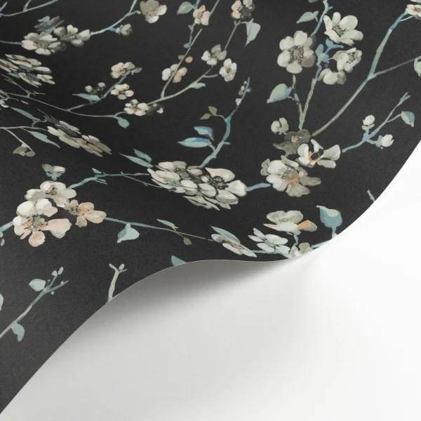 Wie vom Winde verweht, hebt ein Frühlingsapfelzweig seine weißen Blüten an die Wände eines Wohnzimmers. Dieser Digitaldruck stellt die Malerei in den Mittelpunkt: Er wirkt wie eine frisch gemalte japanische Skizze. Um ihm einen Hauch von Eleganz zu verleihen, entschied sich Casadeco für einen markanten Hintergrund. Die dunklen Schattierungen betonen die Zartheit dieser gemalten Komposition.