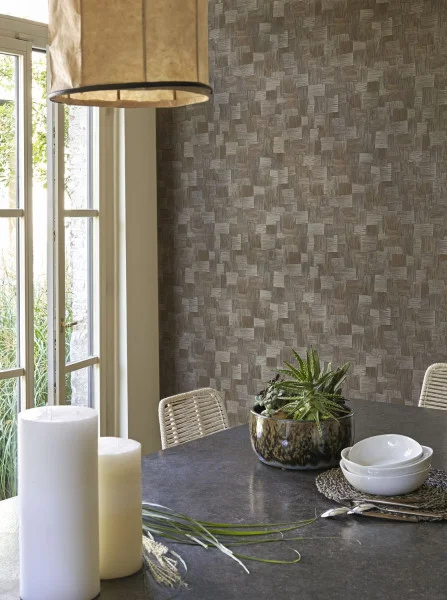Vegetable plot 4 strong colours (white, green, brown and black), a chic, compact palette. To showcase the weaving design of Dura, Casadeco pairs a marked grain with a matte paper.