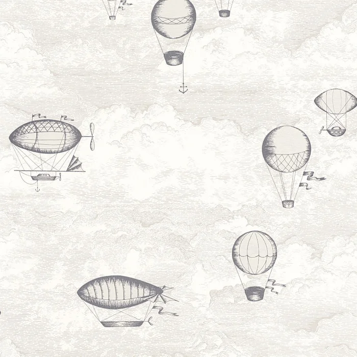 Die Expédition Tapete ist perfekt für unglaubliche Reisen! Luftschiffe, Ballons und Segelflugzeuge bedecken den bewölkten Himmel.