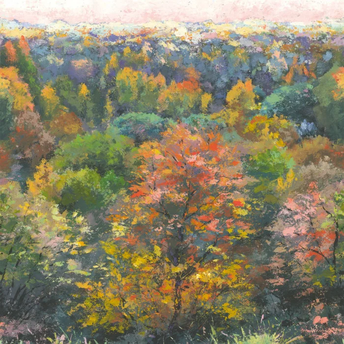 Magie: Die Gouachestriche auf dem Gemälde „Indian Summer“ gewinnen an Bedeutung, wenn man ein paar Schritte zurücktritt. Betrachten Sie den majestätischen Herbstwald aus der Vogelperspektive, schauen Sie sich die Bäume mit ihrem bunten Laub und die Gräser an, die sich im Wind bewegen.... Ein Hauch von frischem Wind für Ihre Wände.
