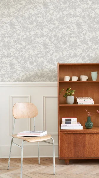 Die wilde Seite des Toile de Jouy: Casadeco hat eine wilde Tapete geschaffen, ein geschicktes Gewirr aus Lianen, tropischem Laub und zarten Blumen, perfekt für Fans des Pflanzen-Designs, die sich einen Raum ohne üppige grüne Pflanzen nicht vorstellen können.