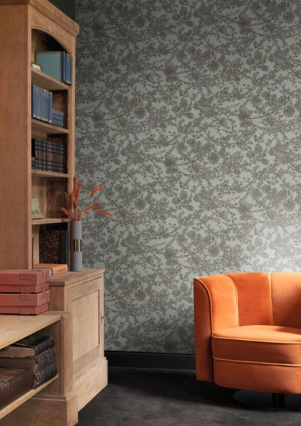 Die wilde Seite des Toile de Jouy: Casadeco hat eine wilde Tapete geschaffen, die ein geschicktes Durcheinander aus Lianen, tropischem Laub und zarten Blumen zeigt – eine perfekte Atmosphäre für Liebhaber des Pflanzen-Designs, die sich einen Raum ohne üppige grüne Pflanzen nicht vorstellen können.