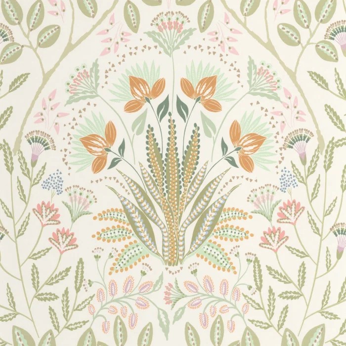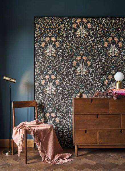 Die heraldische Inspiration erscheint an den Wänden mit Lords! Die zentrale Blume ist geschickt wie ein Wappen gestaltet und ist ebenso faszinierend wie ansprechend. Vielleicht symbolisiert sie den Stolz eines Lords auf seine (englischen) Gärten oder das Emblem eines schottischen Herrenhauses?