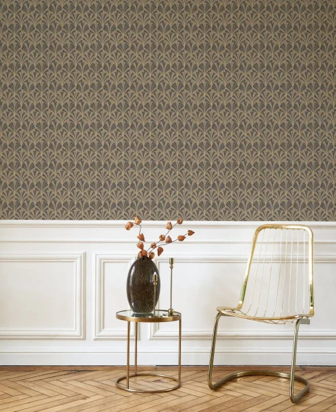 Dieses aus kleinen Palmen zusammengesetzte Motiv ist ein Sinnbild des Art déco. Zwei verschiedene Farben: irisierend oder schattenbildend, werden verwendet, um diesen Offset-Effekt zu erzeugen, der den begehrten Stil dieses prächtigen Designs unterstreicht.