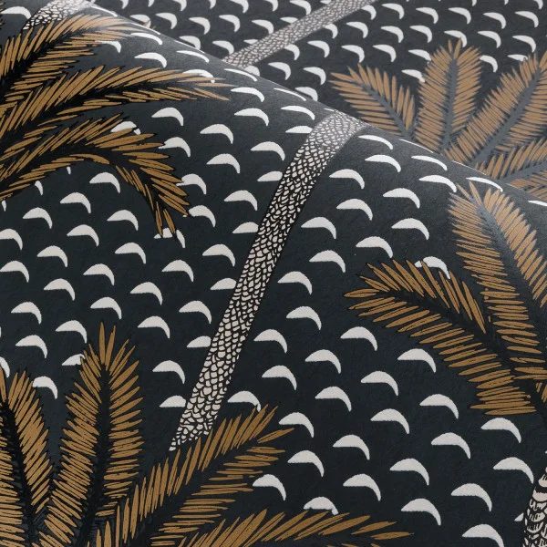 Die Atlas-Tapete aus der Mirage-Kollektion von Casamance, inspiriert von der Wüstenlandschaft, zeigt ein modernes, rhythmisches Muster mit stilisierten Palmen auf einem Hintergrund, der an Sandlinien erinnert, und verleiht jedem Interieur eine zeitgemäße tropische Atmosphäre sowie künstlerische Eleganz.