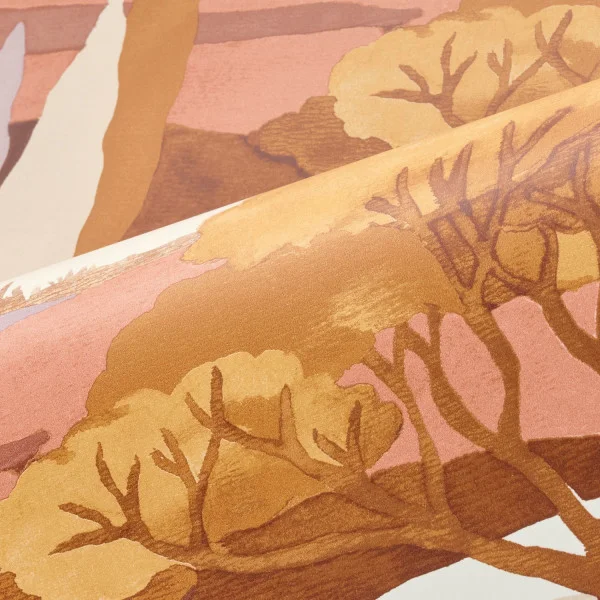 Auf dem glatten Papier lassen die Pinselstriche Meeresküsten und Dünenwälder entstehen, so weit das Auge reicht. In sanften Aquarellfarben wird die ikonische Landschaft von Cap Ferret lebendig. Schirmkiefern, Strandhafer und Tamarisken bedecken die charakteristischen Sandhänge der Region Landes. Der sanfte Regen erzeugt eine unendliche Anzahl von weichen und leuchtenden Farbtönen, Kurven in Grün, Rost oder einer überraschenden Palette von Beigetönen. Casamance hat die Rotationstiefdrucktechnik angewandt, um die Ebenen der matten Schattierungen zu schaffen, die den Farben von Cap Ferret ihre Finesse verleihen.