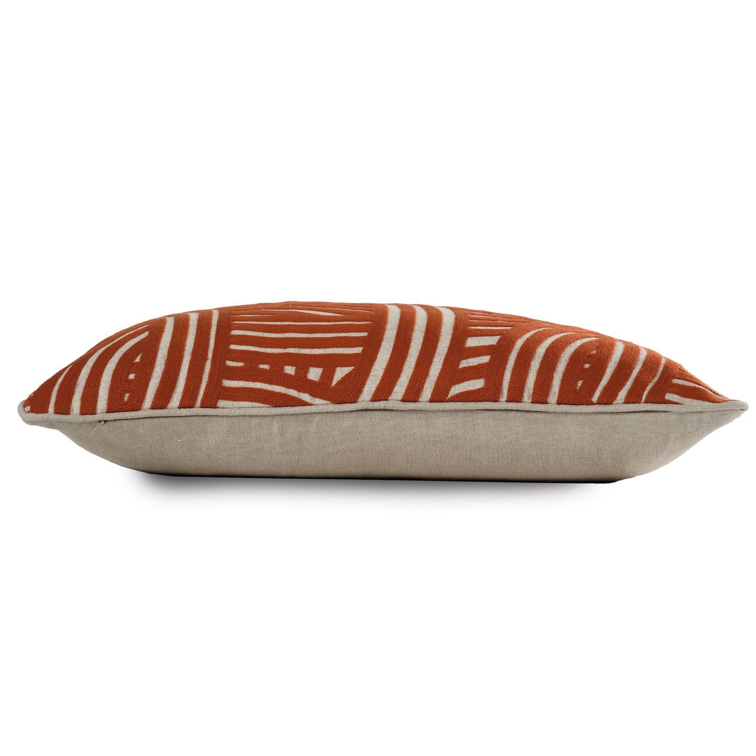 Mit Caravane präsentiert Casamance ein Dekokissen mit traumhafter Stickerei. In farbenfrohen Bahnen zieht die aufwendige Stickerei Schleifen und Bänder über die natürliche Leinenoberfläche des Kissens. Der Reißverschlss ist clever versteckt auf der einfarbigen Leinenrückseite des KBezugs eingenäht. Die drei frischen und strahlenden Farbvarianten machen Caravane zu einem absoluten Hingucker für Ihren Wohnbereich.