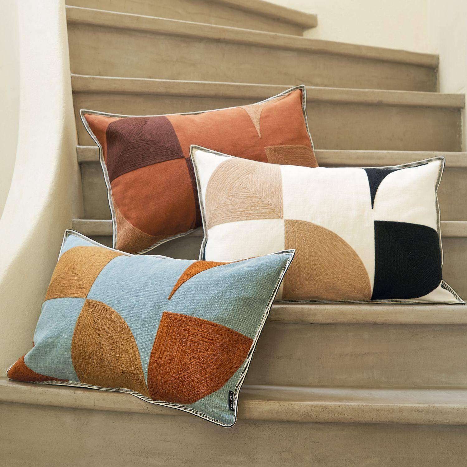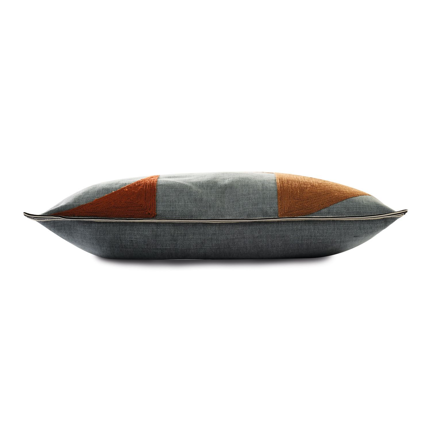 Coconut zeigt geometrische Formen in aufwendiger Stickerei auf einfarbigem Grund. Casamance hat für Coconut eine weiche un doch geradlinige Stickerei designt, wleche mit einem Woll-Mixgarn realisiert wird. Die Rückseite ist passend einfarbig gestaltet und hat eine samtig weiche Oberfläche. Als Highlight setzt sich die gemusterete Bandeinfassung optisch vom Kissen ab, und fügt dennoch perfekt in den Look.