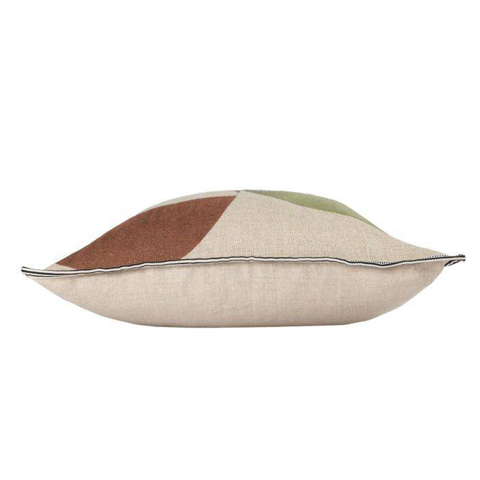 Die kunstvolle Bestickung aus Wolle und Acryl verleiht dem geometrischen Muster eine besondere Tiefe und macht jedes Kissen zu einem stilvollen Blickfang. Die ausdrucksstarke Farbkombination aus Noir, Kupfer, Kaki und Ocker sorgt für eine warme, zugleich moderne Ausstrahlung. Dank der neutral gehaltenen Rückseite lässt sich der Bezug vielseitig kombinieren und flexibel einsetzen.