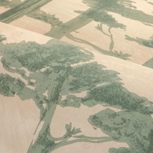 Legendes präsentiert sich als Vinyltapete mit Non-woven-Rücken und einer charakteristischen Oberfläche im „brushed straw finish“. Das Design zeigt florale Pflanzenmotive, die an blühende Natur und japanische Legenden erinnern, begleitet von kalligraphischen, wellenartigen Linien – eine harmonisch-poetische Komposition, die Tiefe und Ausdruckskraft verleiht. Die textile Struktur verleiht der Oberfläche eine raffinierte Haptik, ohne visuelle Dominanz