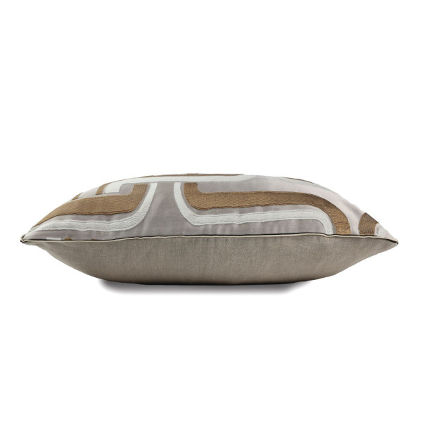 Dieses raffinierte Jacquard Kissen von Maison Casamance zeigt ein geometrisches Muster von verwobenen Linien auf einem enfarbigen Grund. Drei glänzende Farben fügen sich spielend in moderen Interieurs. Die Rückseite des Kissenbezugs ist in einfarbigem Leinen gehalten.