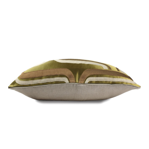 Dieses raffinierte Jacquard Kissen von Maison Casamance zeigt ein geometrisches Muster von verwobenen Linien auf einem enfarbigen Grund. Drei glänzende Farben fügen sich spielend in moderen Interieurs. Die Rückseite des Kissenbezugs ist in einfarbigem Leinen gehalten.