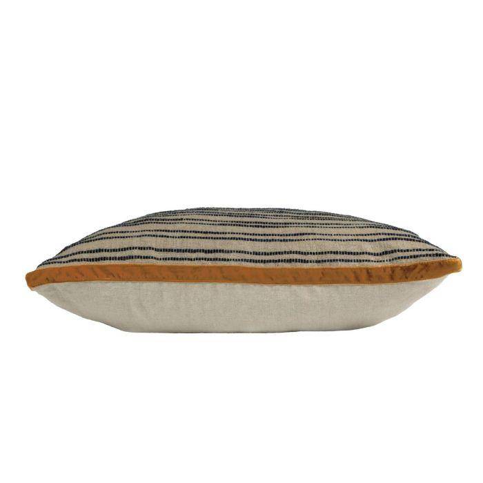 Das feine Streifenmuster in Naturel Noir verleiht dem Kissen eine elegante, ruhige Optik mit modernem Charakter. Die unifarbene Rückseite schafft einen harmonischen Ausgleich und bietet vielseitige Kombinationsmöglichkeiten in unterschiedlichen Wohnstilen. Ein stilvolles Detail ist der dezente Steg aus weichem Samt, der dem Design eine edle Note verleiht und den hochwertigen Look unterstreicht.