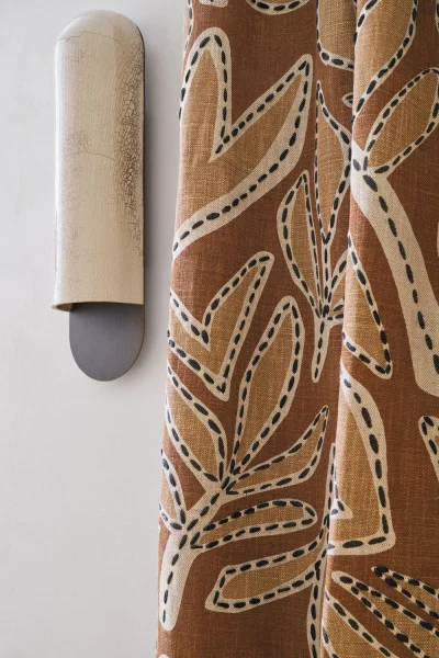 Padua von Casamance ist ein künstlerischer Stoff mit natürlichem Charakter, bei dem natürliche Materialien und Handstickereien wirklich einzigartige Textilien für Vorhänge und Kissen schaffen.
