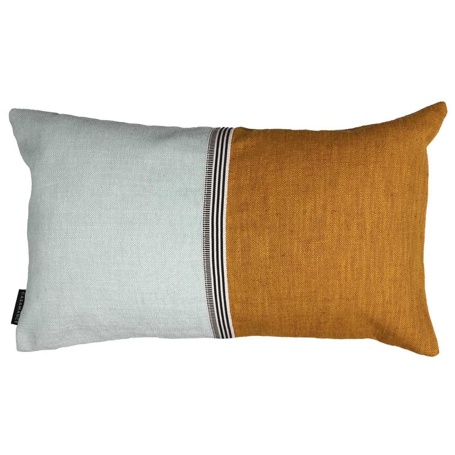 Rime ist ein fabelhaftes zweifarbiges Kisen von Casamance. Eine schwarz/weiße Borte trennt die beiden Farben stilsicher. Angeboten wird der Baumwoll/Leinen-Kissenbezug Rime in fünf ansprechenden Farbkombinationen, jeweils mit einer einfarbigen Rückseite.
