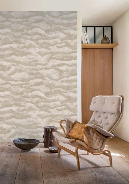 SOHAR erinnert je nach Stimmung und gewählter Farbe an das Meer oder den Himmel, erzeugt aber immer das gleiche Gefühl. Die Idee des Unendlichen und eines edlen Charakters. Die von Casamance verwendete Technik ist innovativ. Die Druckwalzen erzeugen ein präzises Design. Das Papier ist glatt und weich und hebt die kleinsten Details der aquarellierten Landschaft hervor. Ein Metallic-Grit-Film hebt die Details mit exquisiten und zarten Goldpunkten hervor.