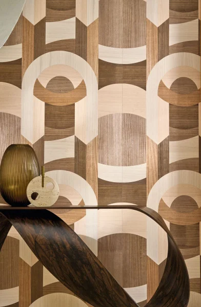 Die Traversée-Tapete Casamance aus der Traversée Tapetenkollektion ist ein Kunstwerk, das Luxus, Stil und Tiefe in einem geometrischen Muster vereint, das vom opulenten Art-Déco-Stil inspiriert ist. Diese berühmte Tapete zeigt ein großflächiges Muster aus Holzfurnier. Die spielerische Variation der Farbtöne verleiht dem Design zusätzliche Dimension und Lebendigkeit. Die Traversée-Tapete ist eine raffinierte Wahl für alle, die ihr Interieur mit einem luxuriösen und modernen Akzent bereichern möchten.