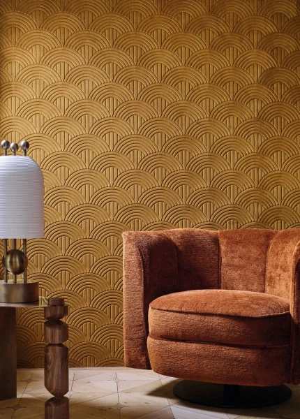 VOLUTIS verbindet die Eleganz von besticktem Samt mit einem 3D-Effekt. Sein einzigartiges, von Casamance perfektioniertes Know-how verbindet Weichheit und 3D-Effekte mit akustischen Eigenschaften. Ein glatter Samt wird auf einen dicken Schaumstoff aufgetragen, bevor er bestickt wird. Das Garn erzeugt ein stilisiertes Design aus Art Deco-inspirierten Palmetten in einer Reihe von tiefen Farben der Marke: Greige, Senf, Celadon, Anthrazit.