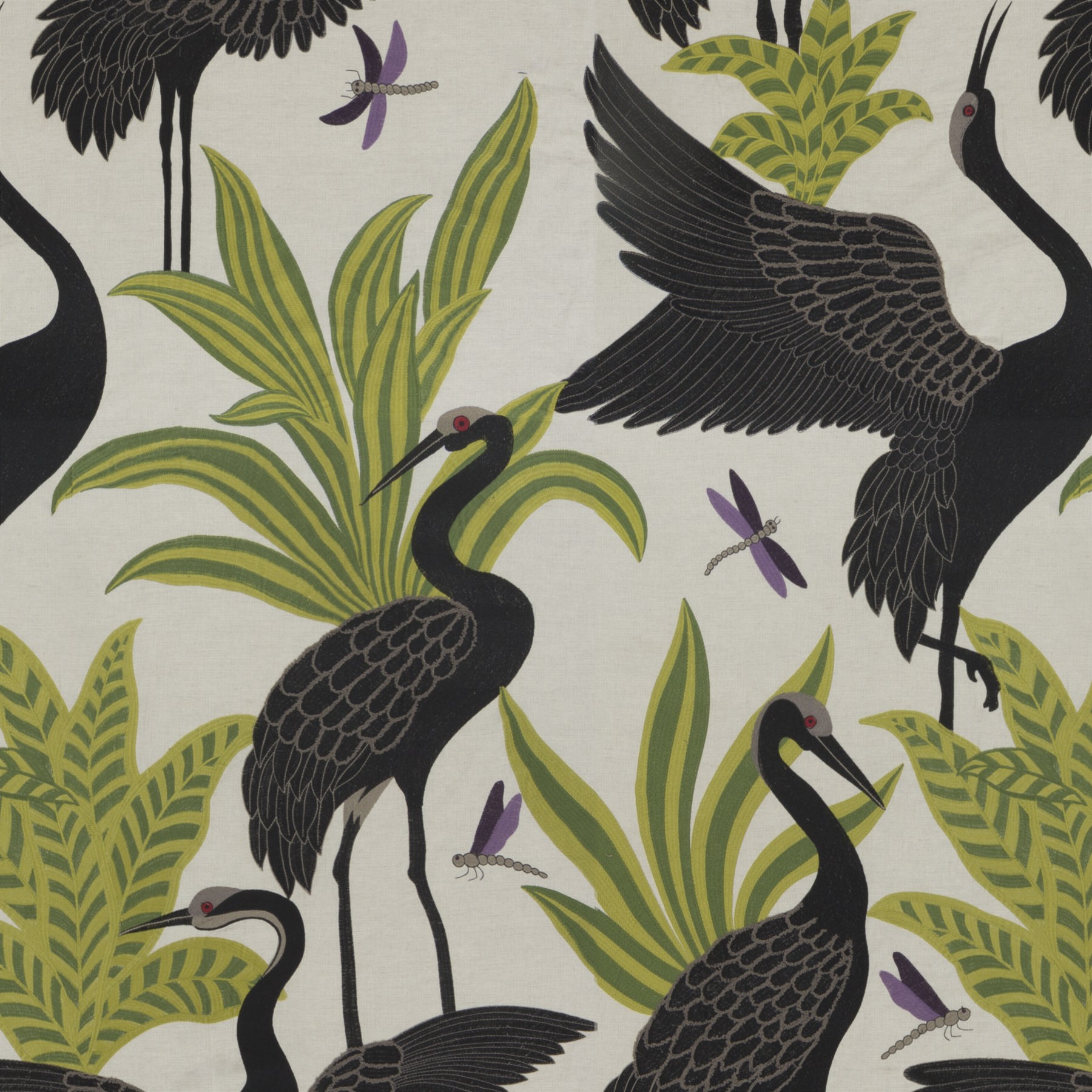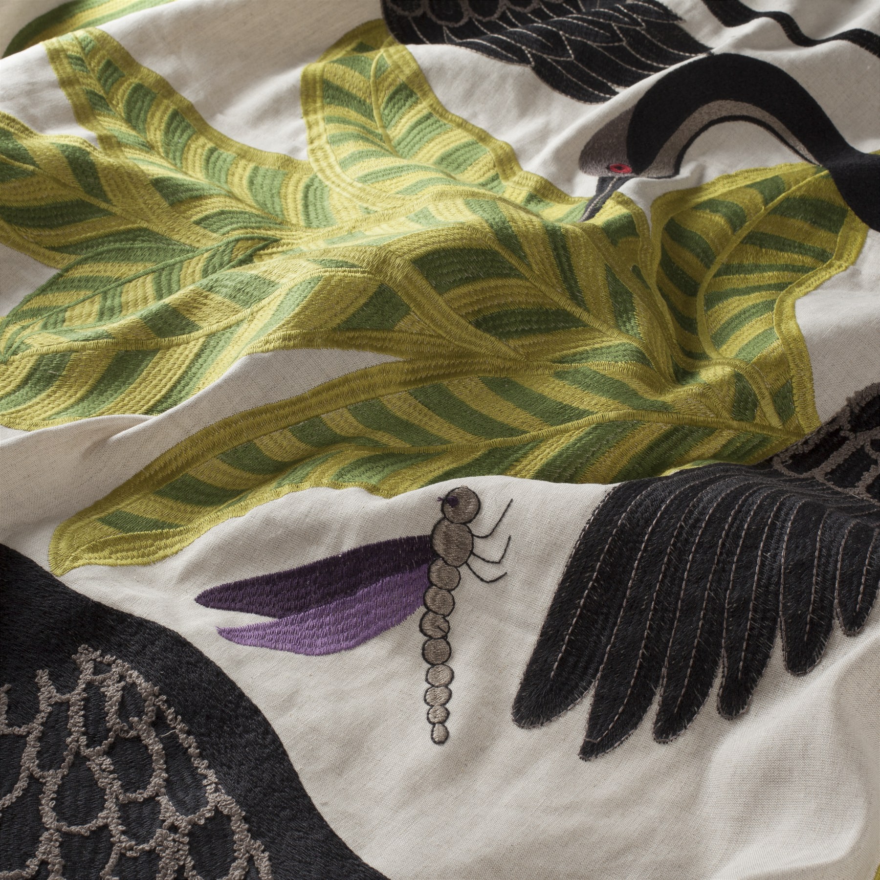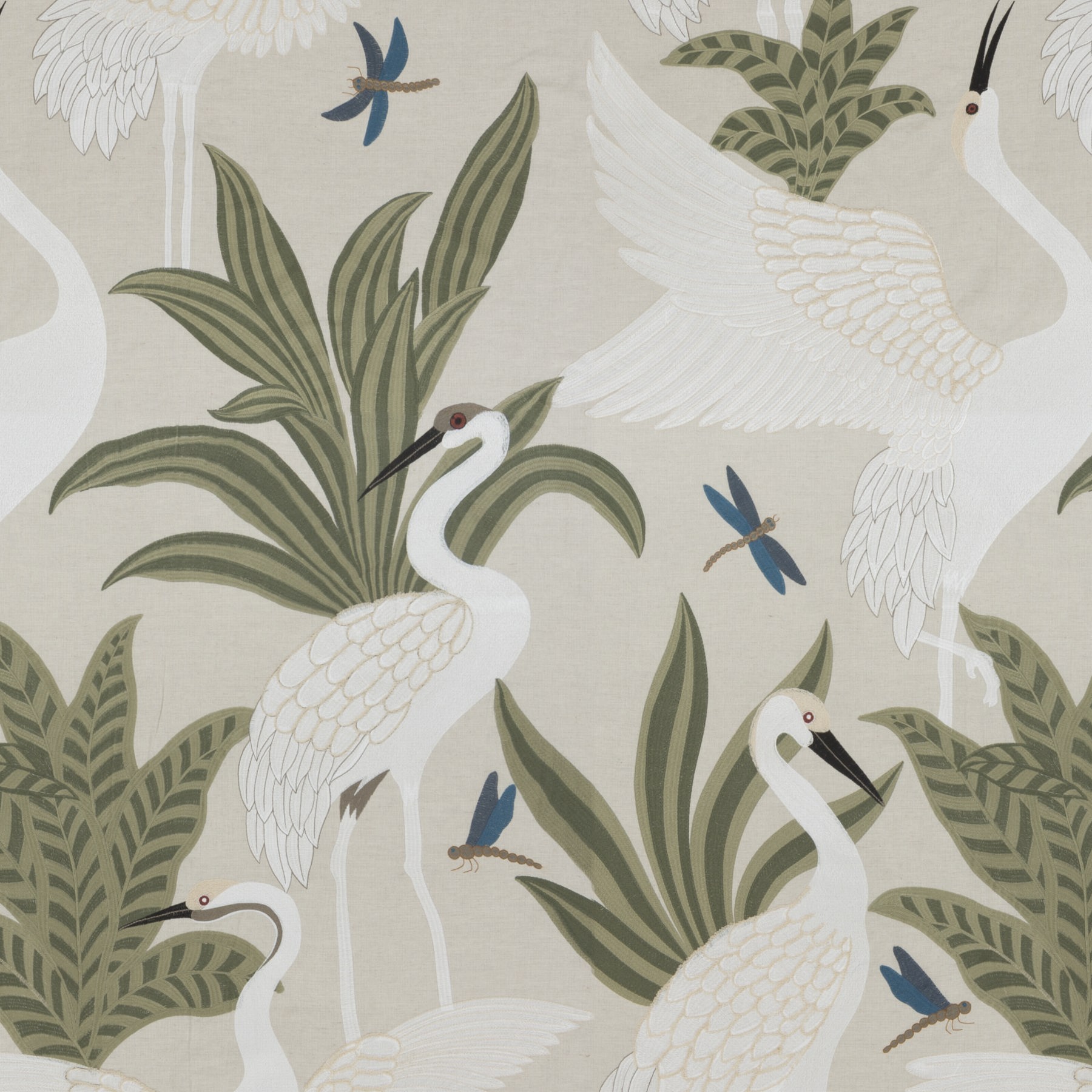Der Spirit of Silence Stoff von Chivasso ist ein hochwertiges dekoratives Material, das 55% Leinen und 45% Baumwolle mit einem großformatigen Stickmotiv aus 71% Polyester und 29% Polyacryl kombiniert.