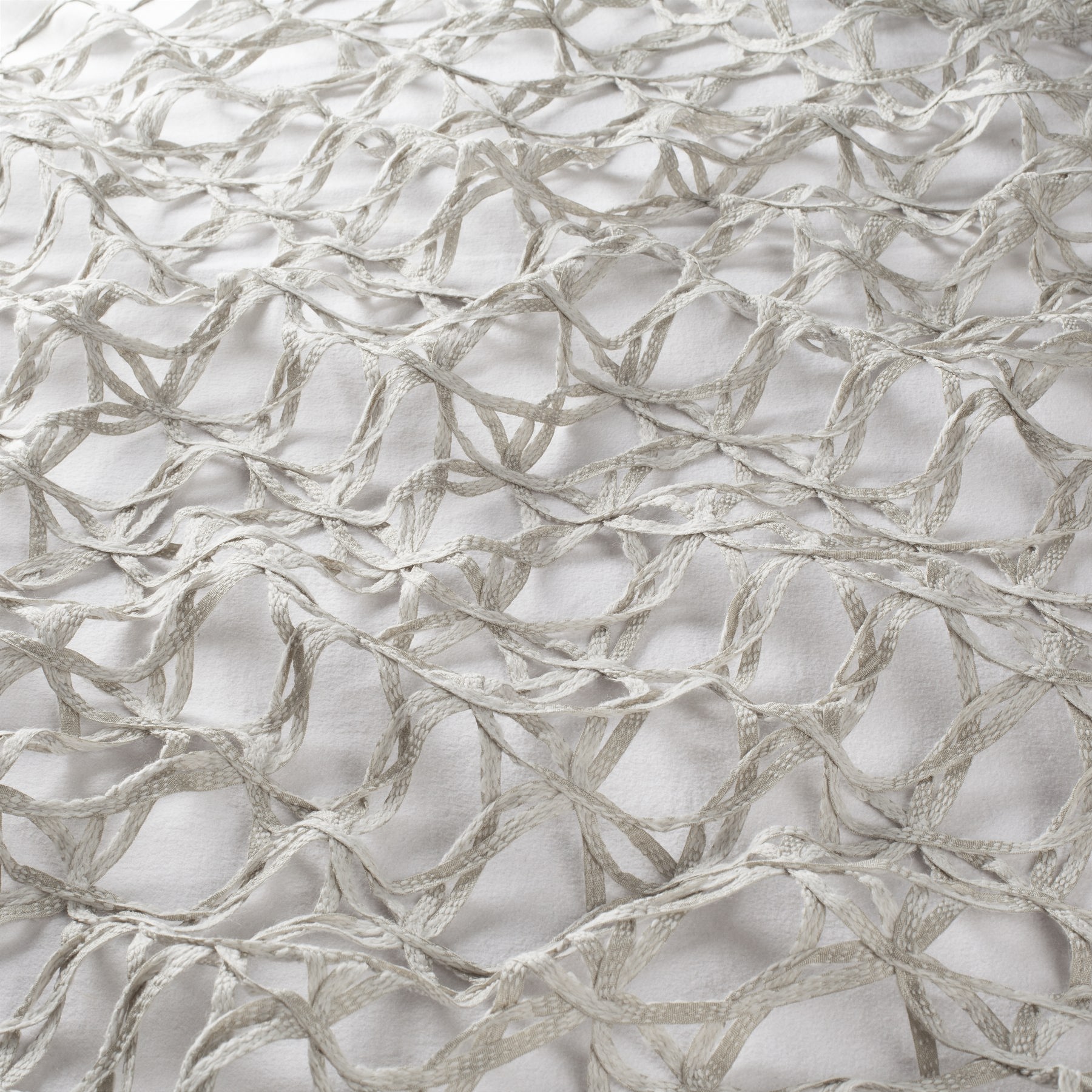 Splendid ist ein dekorativer Stoff von der Marke Chivasso, der 55% Polyester und 45% Polyacryl bei einer Breite von 310 cm kombiniert. Dieses Netzgewebe mit großen, unregelmäßigen Maschen, die an ein Verzieren aus Bändern erinnern, wird aus hochwertigen Garnen gefertigt.