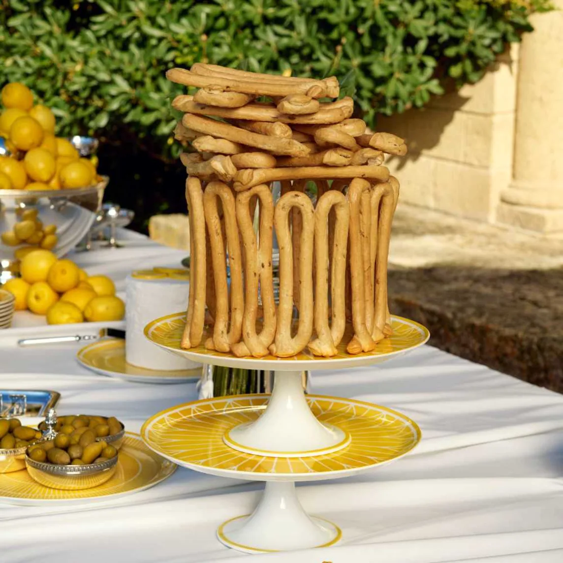 Die Malmaison Riviera Tortenplatte auf Fuß von Christofle Paris ist eine edle Etagere aus hochwertigem Limoges-Porzellan, ideal zum Präsentieren von Kuchen, Törtchen, Gebäck oder herzhaften Leckereien. Ob für den Alltag oder festliche Anlässe – diese Tortenplatte verleiht jedem Tisch eine raffinierte Eleganz.