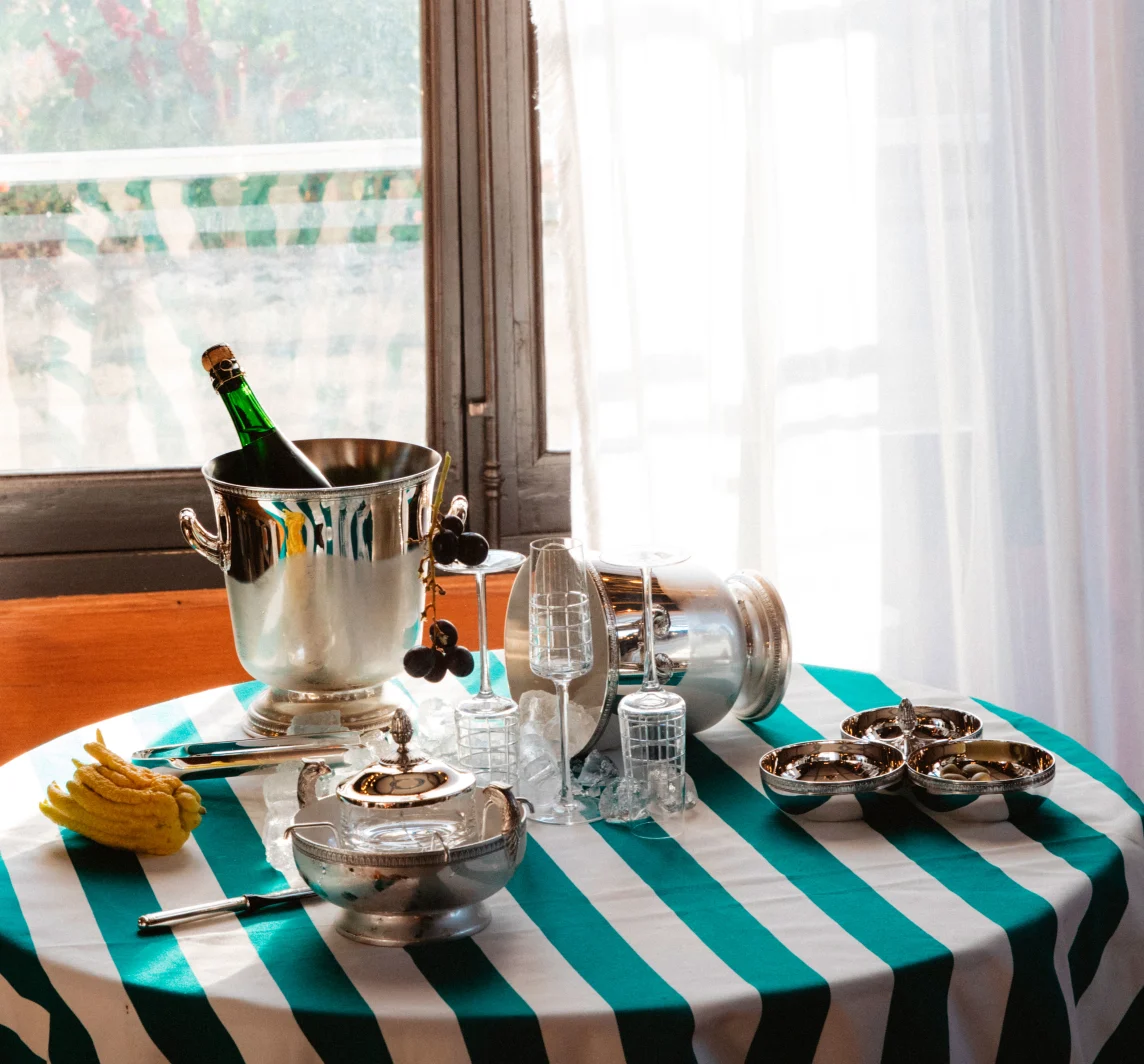 Die Magie eines perfekt inszenierten Raumes entsteht durch den Kontrast der Materialien. Der kühle, brillante Glanz des Christofle-Silbers entfaltet seine maximale architektonische Wirkung erst im Dialog mit weichen Texturen. In der Kombination mit schweren Leinentischdecken und den luxuriösen Stoffen und Gardinen aus unserem Portfolio entsteht ein Spannungsfeld aus Lichtreflexion und textiler Wärme, das jeden Speisesaal in einen Festsaal verwandelt. Dieser Anspruch an absolute Eleganz endet nicht an der Terrassentür: Für exklusive Al-Fresco-Dinners im Rahmen unserer Outdoor-Konzepte bringt Christofle den Glanz der Pariser Paläste unter den freien Himmel – ein Statement für kompromisslose Gastfreundschaft.