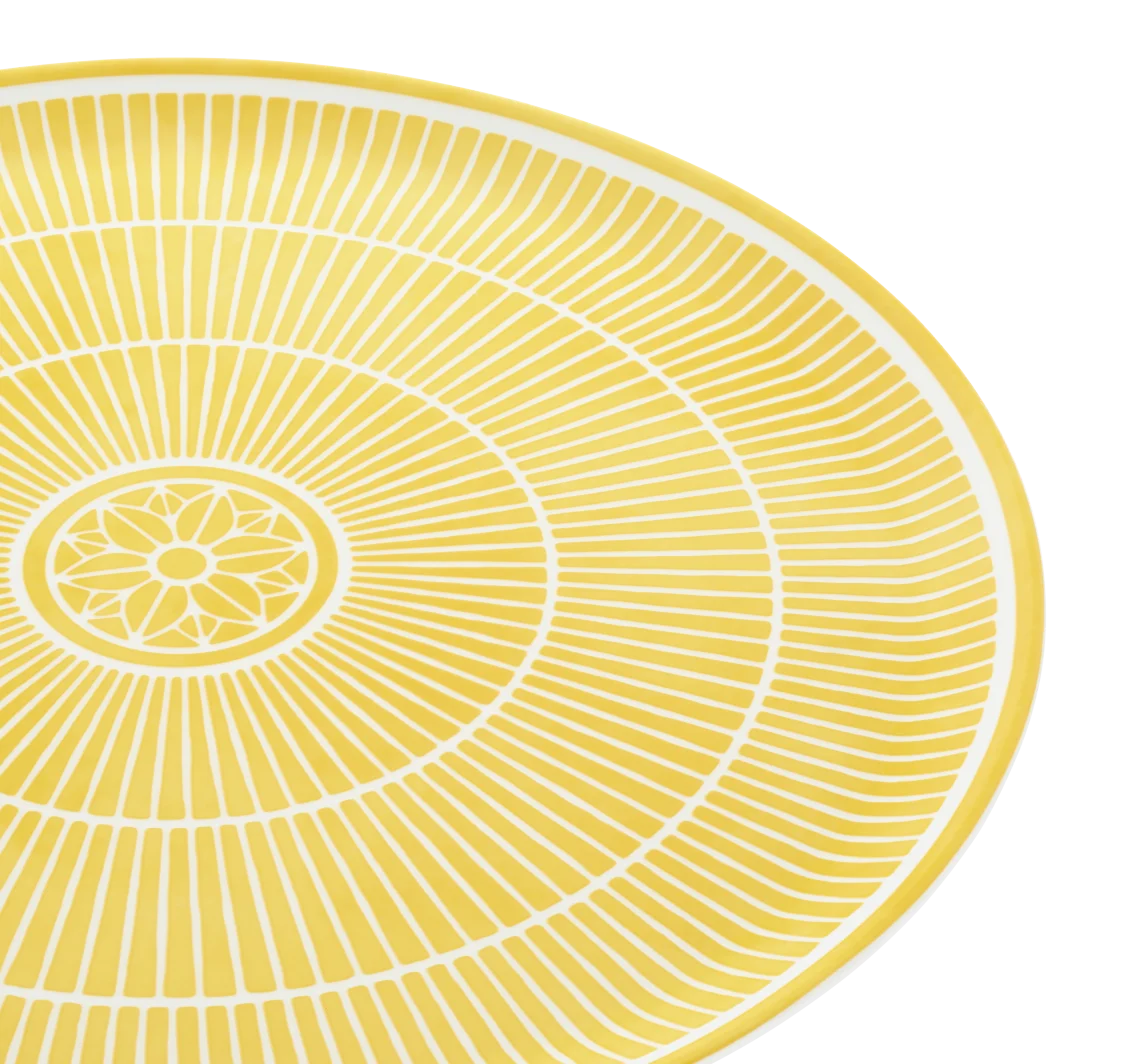 Die Kollektion Malmaison Riviera interpretiert die klassische Malmaison-Linie neu und bringt eine frische, sonnige Ausstrahlung in Ihre Tischkultur. Charakteristische Motive wie Palmetten, Rosetten und strahlenförmige Ornamente spiegeln die Inspiration aus der Antike wider und werden durch ein zartes Aquarellgelb lebendig ergänzt.