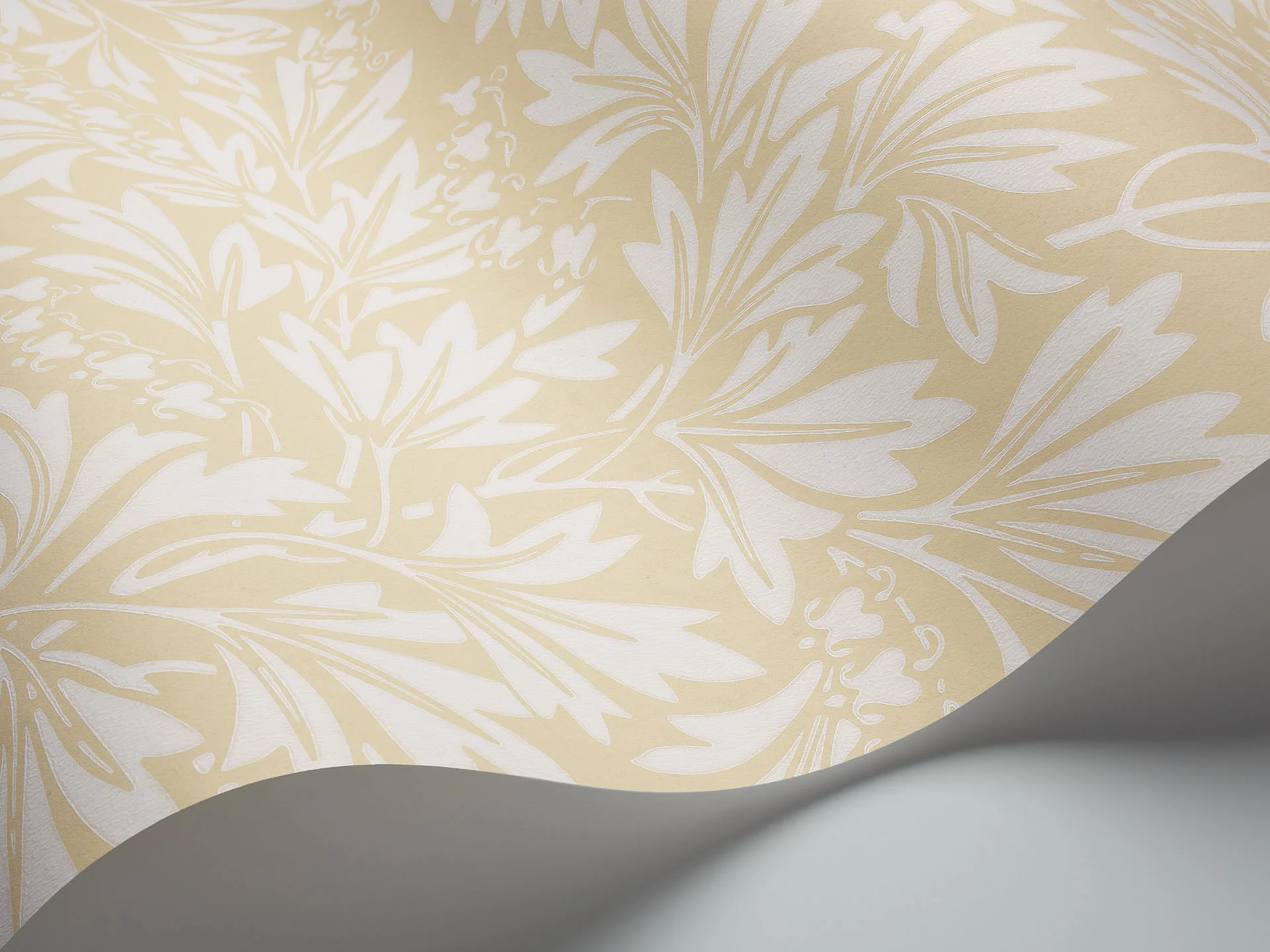 Dialytra zeigt ein fließendes Blattdesign aus der frühen viktorianischen Zeit und ist in den Farben Kreide auf Soft Olive, Muschel auf Pergament und Kreide auf Pale Ochre erhältlich.