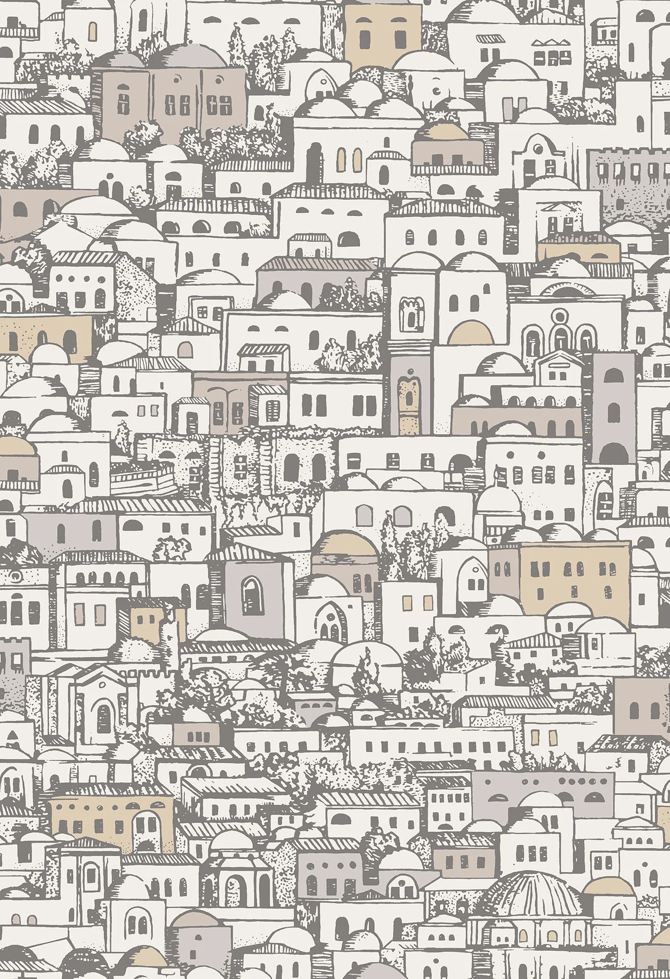 Ursprünglich wurde Mediterranea in den späten 1940er Jahren für die Eingangshalle von Piero Fornasettis Mailänder Residenz entworfen und stellt eine weitläufige Stadtlandschaft mit Dächern, Kuppeln und Fenstern dar. Jedes detaillierte Element der Szene wird durch leuchtende Metallic-Highlights und kühne Linienführung mit auffälligen Grundtönen zum Leben erweckt, neben dem schmucklosen Weiß und Schwarz.