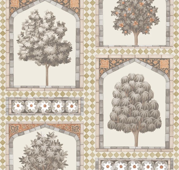 Sultan's Palace vereint zwei von Martins einflussreichsten Designelementen: traditionelle britische Motive und orientalisch inspirierte Handwerkskunst. Eine Kartusche mit englischen Bäumen ist das Herzstück dieses atemberaubenden Patchworks, umgeben von einem Mosaik aus Steingutfliesen, das von der Fassade der Wazir-Khan-Moschee in Lahore mit ihren hochdekorativen Bögen und komplizierten botanischen Fliesen inspiriert ist. Dieses reiche Design ist in den königlichen Farben China Blue und Ocker, Print Room Blue und Duck Egg sowie Gold und Spice erhältlich und kann mit Zellige und Zellige Border kombiniert werden.