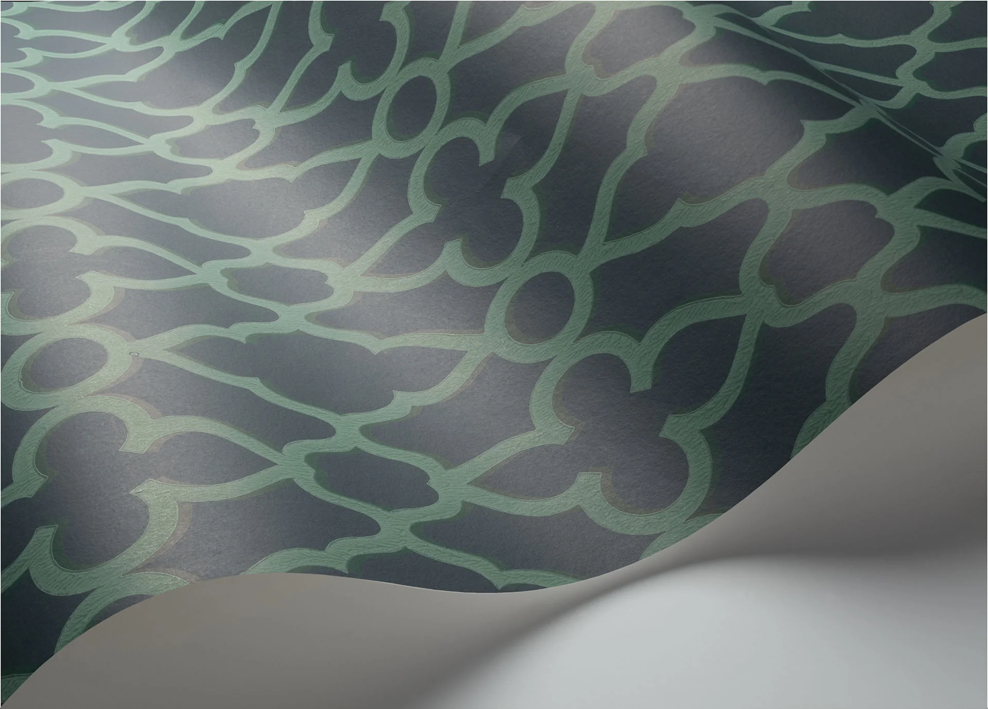 Treillage, was so viel bedeutet wie Gitterrost, ist ein wunderschöner dreidimensionaler geometrischer Druck, der als eigenständiges Papier verwendet oder mit vielen anderen Motiven aus der Pearwood-Kollektion kombiniert werden kann. Präsentiert in der Gartenpalette von Blattgrün auf Kreide, sowie leuchtendes Weiß auf Hyazinthe, gedämpftes Viridian auf Ink, Cerulean Blue auf Midnight und Metallic Bronze auf Charcoal.