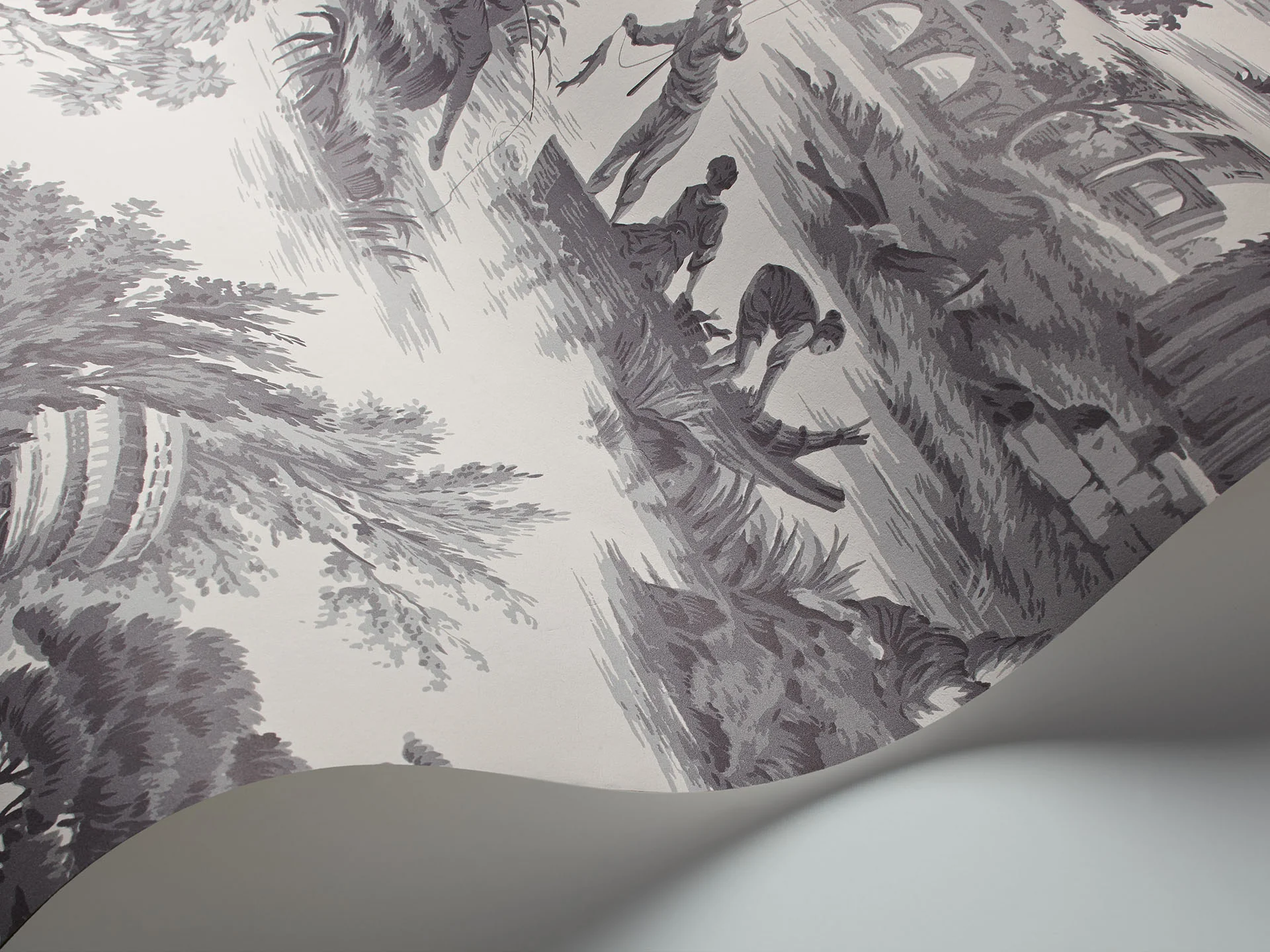 Das Cole and Son Design "Villandry", benannt nach dem Chateau de Villandry, welchen einen der größten Gärten Frankreichs beherbergt, ist im klassischen Toile de Jouy-Stil gedruckt. Es zeigt eine pastorale Landschaft mit Parkanlagen, Wasserwegen und Laubengängen in den traditionellen Farben Rot, Anthrazit, Kobaltblau und Taubengrau.