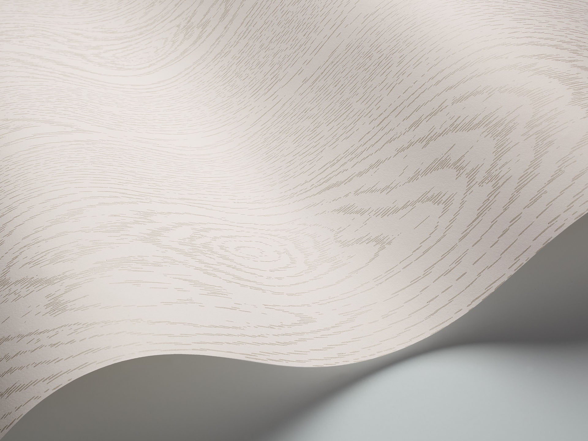Wood Grain ist ein handgezeichnetes Tapetenmotiv mit Holzmaserungseffekt und industrieller Anmutung. Zu den Farben gehören Grau, Drift Wood, Eiche, Walnuss, Dunkelbraun, Weiß, Inky Blue, Schwarz-Weiß und ein rauchiges Charcoal.