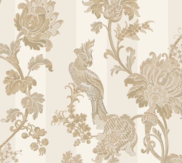 Zerzura stammt aus der mythischen Stadt und bedeutet „Oase der kleinen Vögel“. Der luxuriöse Druck in klassischen Farben mit modernen Kakadus in vollem Gefieder wurde durch das Design eines alten Archivdokuments inspiriert und besteht aus einer komplizierten Linienführung, die den Eindruck einer Stickerei erweckt. Wählen Sie aus einer traditionellen Farbpalette in den Tönen Entenei und Oliv, Gold und Pergament und Chinablau oder schaffen Sie eine luxuriöse Boudoir-Stimmung mit Schiefergrau und Blush Pink sowie Königsblau und Gold mit seinen glänzenden Metallic-Akzenten.