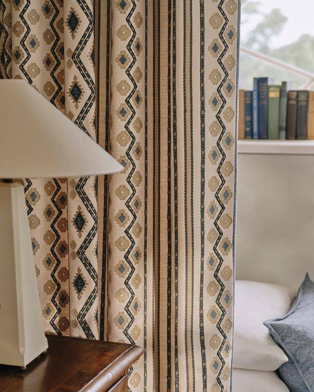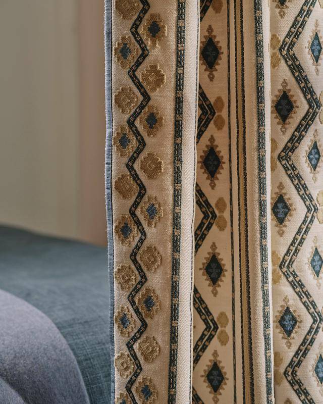 Der Deko- & Polsterstoff Bayton von Colefax & Fowler vereint zeitlose Eleganz und historische Inspiration. Inspiriert von antiken Kelim-Mustern, besticht Bayton durch kräftige, grobe Stickereien auf einem farbig gewebten Fischgrätmuster, das dem Stoff eine reich strukturierte Oberfläche und subtile Tiefe verleiht.