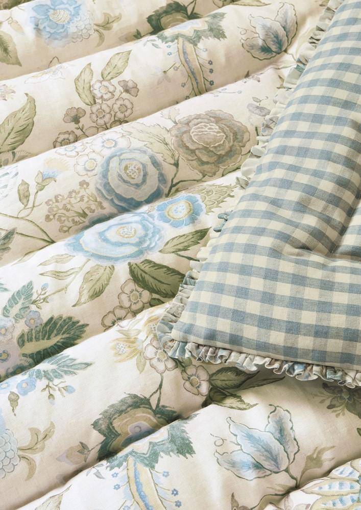 Emmeline ist ein lebhaftes Blumendesign, das im Colefax-Designstudio aus einem Blockdruckstoff des frühen 20. Jahrhunderts entwickelt wurde und seinen charmant-naiven Charakter bewahrt hat. Die stilisierten Blumen und Blätter scheinen aus vielen dekorativen Traditionen zu stammen und eine verlockende Vielfalt an Formen und Mustern zu enthalten. Emmeline wurde malerisch bearbeitet und mit einer üppigen Farbpalette versehen, die ihren suggestiven Charakter noch verstärkt. Emmeline ist ein echter Blickfang im Zentrum einer Dekoration, lässt sich aber auch gut mit Jacquards und kleinen Drucken kombinieren, um ein eklektisches Ambiente zu schaffen.