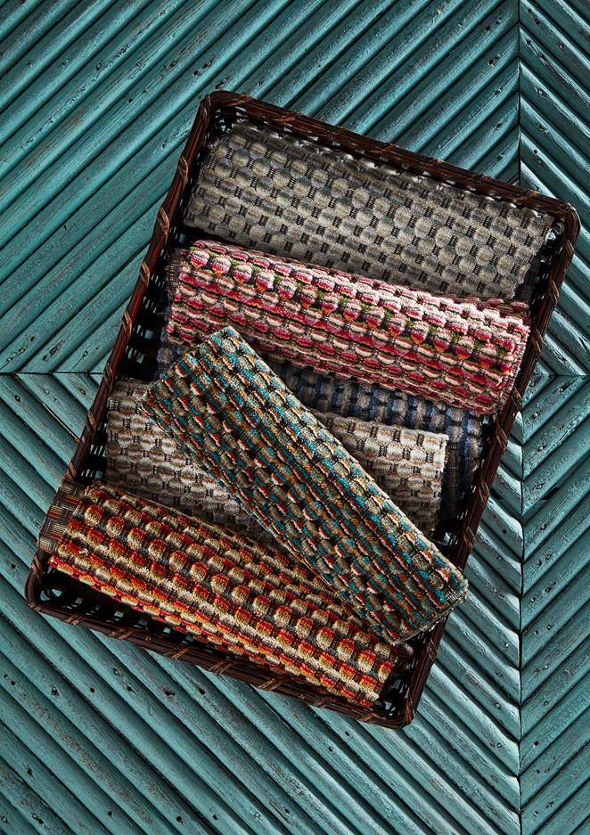 Ein hervorragender geometrischer Samt mit kleinen rechteckigen Bereichen in Leinwandbindung, die mit üppigen Florbereichen kontrastiert werden. Schmale vertikale Streifen in kontrastierenden Farben verleihen dieser luxuriösen Samt-Polsterqualität Lebendigkeit.
