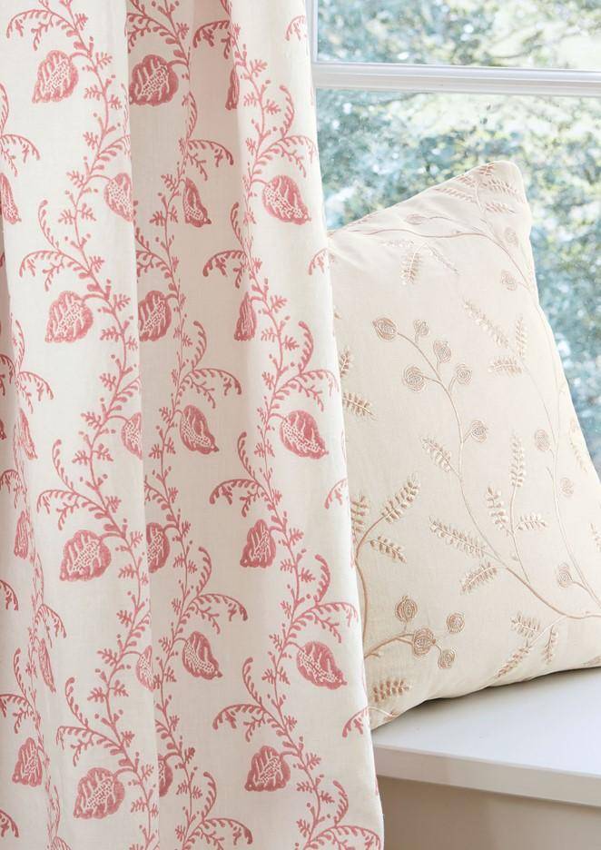 Ein feines, detailliertes Stickereimuster, das aus der Morrigan-Tapete entwickelt wurde. Charmant und einfach im Charakter, ideal für ein ländliches Schema von schlichter Eleganz; Honiton hat cremefarbene Highlights, die einen subtilen Kontrast zu den Leinengrundtüchern bilden.