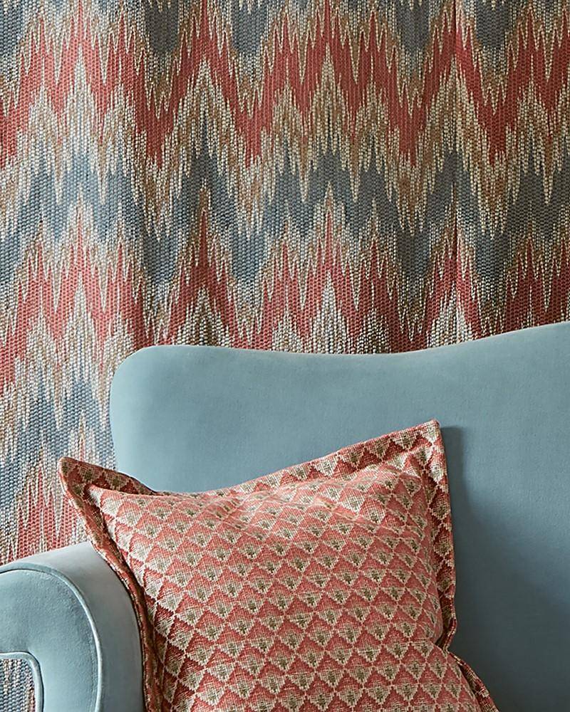 Ein großzügiges Flammenstich-Design, gewebt in einem gewichtigen, strukturierten und unverwechselbaren Gobelin-Stil mit frischen neuen Farben für ein modernes Gefühl.