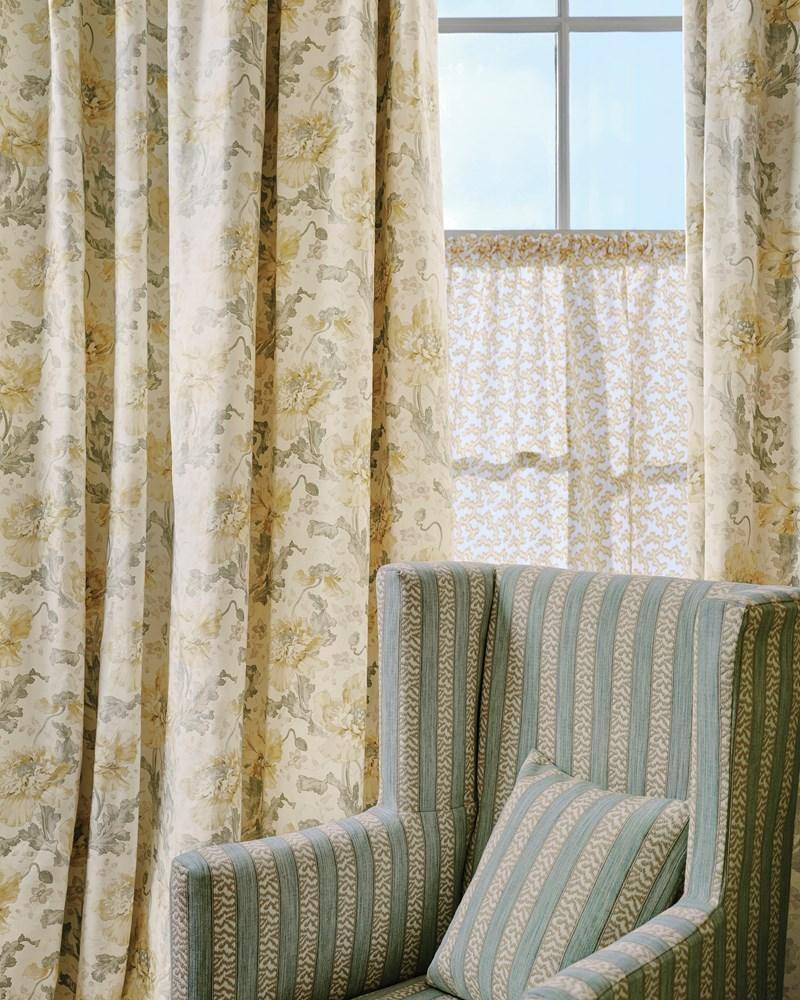 Rosalie ist von einem antiken Stoff aus den frühen 1900er Jahren inspiriert und zeigt große stilisierte Mohnblumen in zarten Schattierungen. Der Rapport hat eine attraktive rhythmische Wirkung, die durch die sanften, an Aquarelle erinnernden Farbtöne harmonisch ergänzt wird.