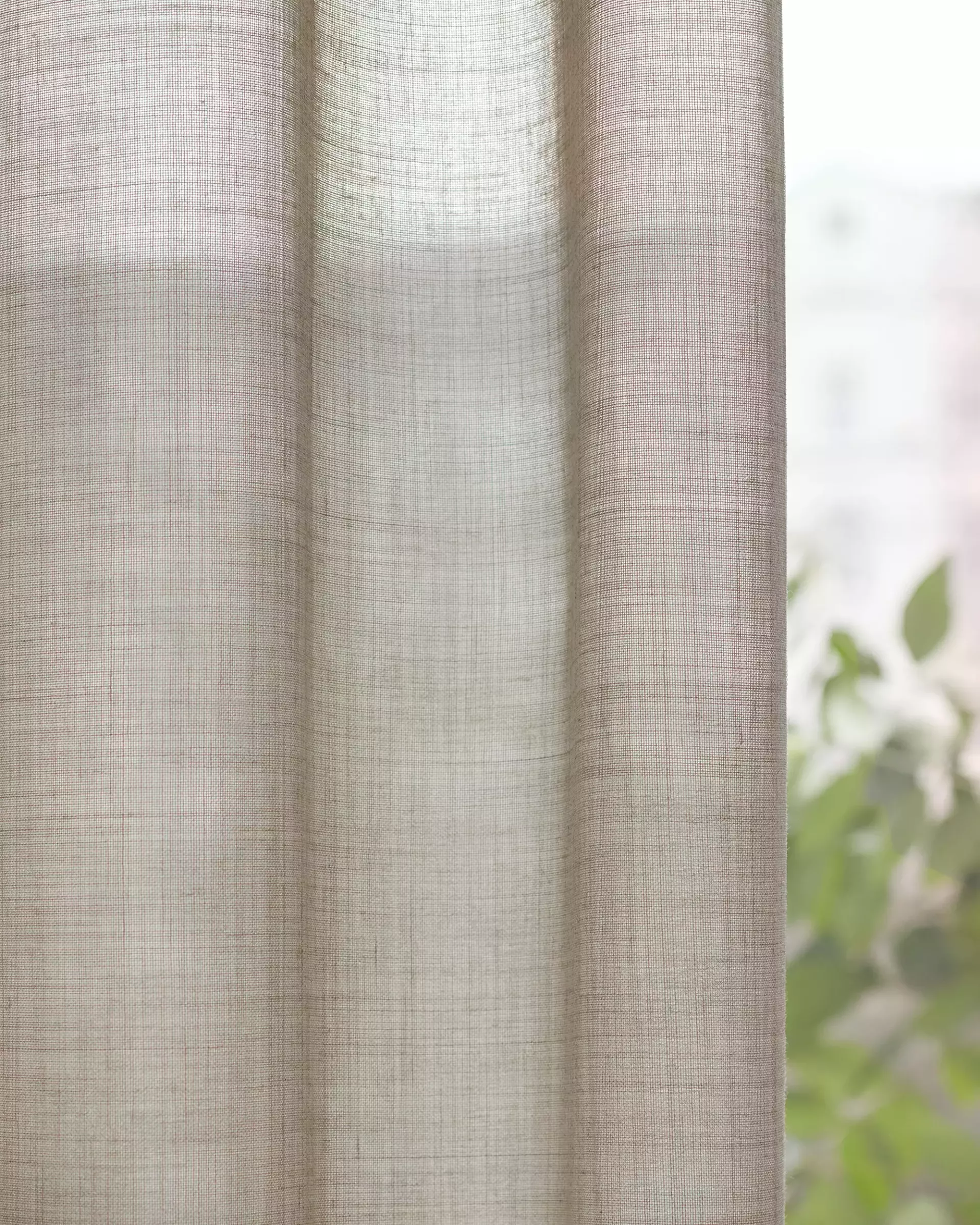 Halbtransparenter Vorhangstoff für den In- und Outdoor-Bereich; Der Garnfärber aus Trevira CS erinnert von der Struktur her an Leinen. Das melierte Garn verfügt jedoch über eine ebenmässige Oberfläche und erzeugt ein homogenes Erscheinungsbild. Koloriert in dezenten, erdigen Farbtönen.