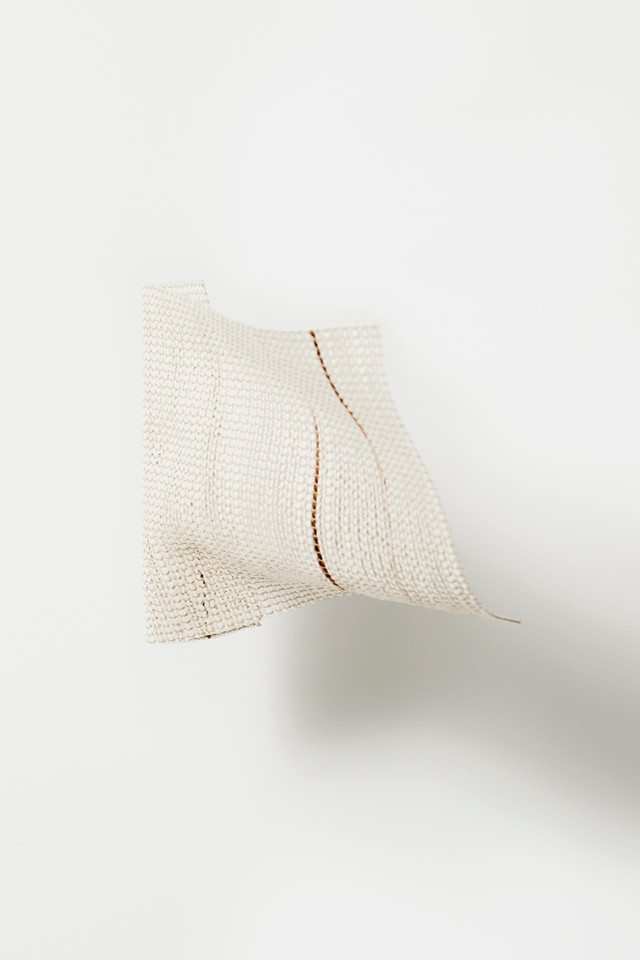 Ein Vorhangschleier mit einzigartig verwebten, kräftigen Garnen schafft ein dichtes und transparentes Strickmuster, das Licht und Material miteinander in Einklang bringt. Die dezente, aber dennoch wirkungsvolle Präsenz der metallischen Reflexe, die in ein Baumwollgarn eingewebt wurden, ist das Ergebnis einer besonderen Textilkompetenz.