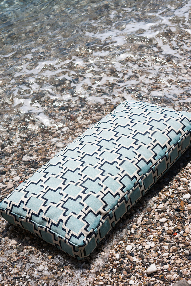 Das geometrisches Motiv auf Panama-Gewebe verleiht diesem Polypropylengewebe hervorragende Funktionseigenschaften. Die Farbauswahl erinnert an Sommer und Outdoor-Aktivitäten, doch dank seiner hervorstechenden Widerstandsfähigkeit kann der Stoff bedenkenlos überall zuhause eingesetzt werden. Da er mit einer Lösung aus Wasser und Bleichmittel gewaschen werden kann, lassen sich die meisten Flecken einfach entfernen. Dedar Stoffe online bestellen.