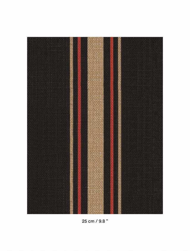 Textile Wandverkleidung aus Jute, durchzogen von breiten farbigen Digitalprint-Streifen Library Wall verspricht Strenge und Materie mit einer Raffinesse, wie es sie bei Jute noch nie gab. Die Basis für das Printmotiv bildet die Acromo. Variationen und Unregelmäßigkeiten bezüglich Farbe und Textur sind als stoffeigene Merkmale zu betrachten und Teil des einzigartigen Charakters des handgefertigten Produkts.