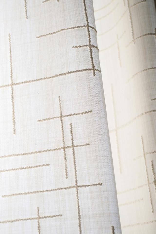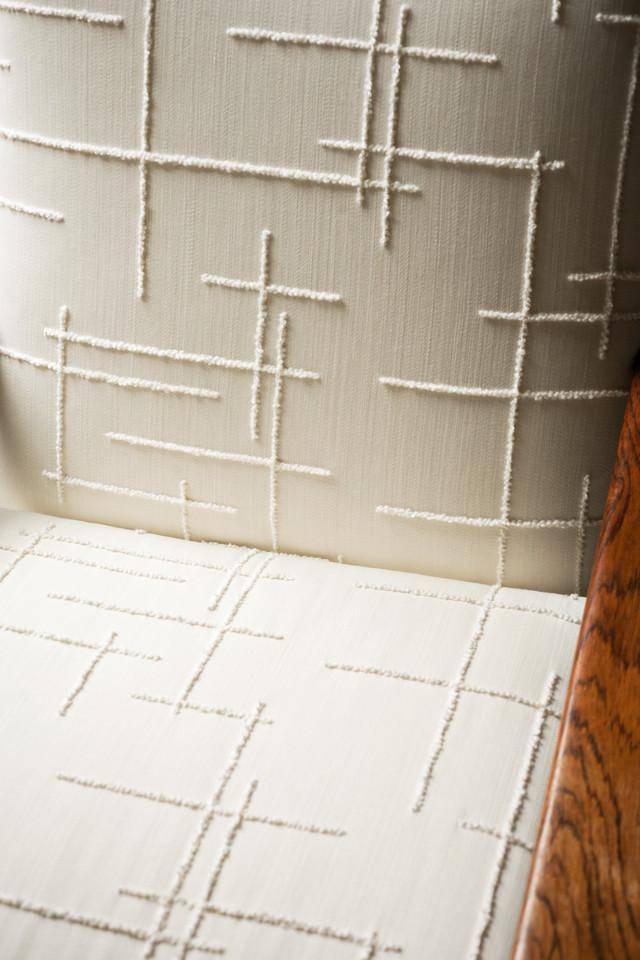 Magnolia aud dem Hause DEDAR ist ein Stoffsatin aus Schurwolle mit einem eleganten und verführerischen Fall ist mit einer vollflächigen Cornely-Stickerei verziert. Ein Ton-in-Ton-Bouclé-Garn von entscheidender Dicke, ebenfalls aus Wolle, zeichnet ein abstraktes geometrisches Muster nach, das an Mondrians Frühwerk erinnert. DEDAR Stoffe online bestellen bei Villakontor.