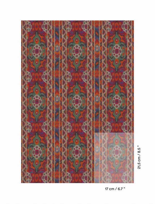 Das geometrische Motiv, das den dekorativen Details eines Orientteppichs entlehnt ist, wurde auf ein voluminöses Strukturgewebe gedruckt. Das Muster wurde zwar bezüglich Material und Technik neu interpretiert, bewahrt aber den ganzen Charme der für die indische Tradition typischen Farben und Motive. Dieser strapazierfähige und vielseitige Stoff eignet sich sowohl für Vorhänge als auch für Polstermöbel.
