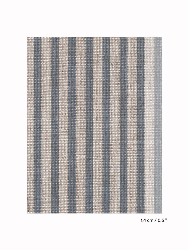 Ein Wandbelag aus reinem Naturleinen in Leinwandbindung wird im Digitaldruck mit sehr feinen, dicht gepackten Streifen versehen, um den zarten Effekt eines halbflachen Wandgewebes zu erzielen. Der Druckgrund für dieses Muster ist Mandolino.